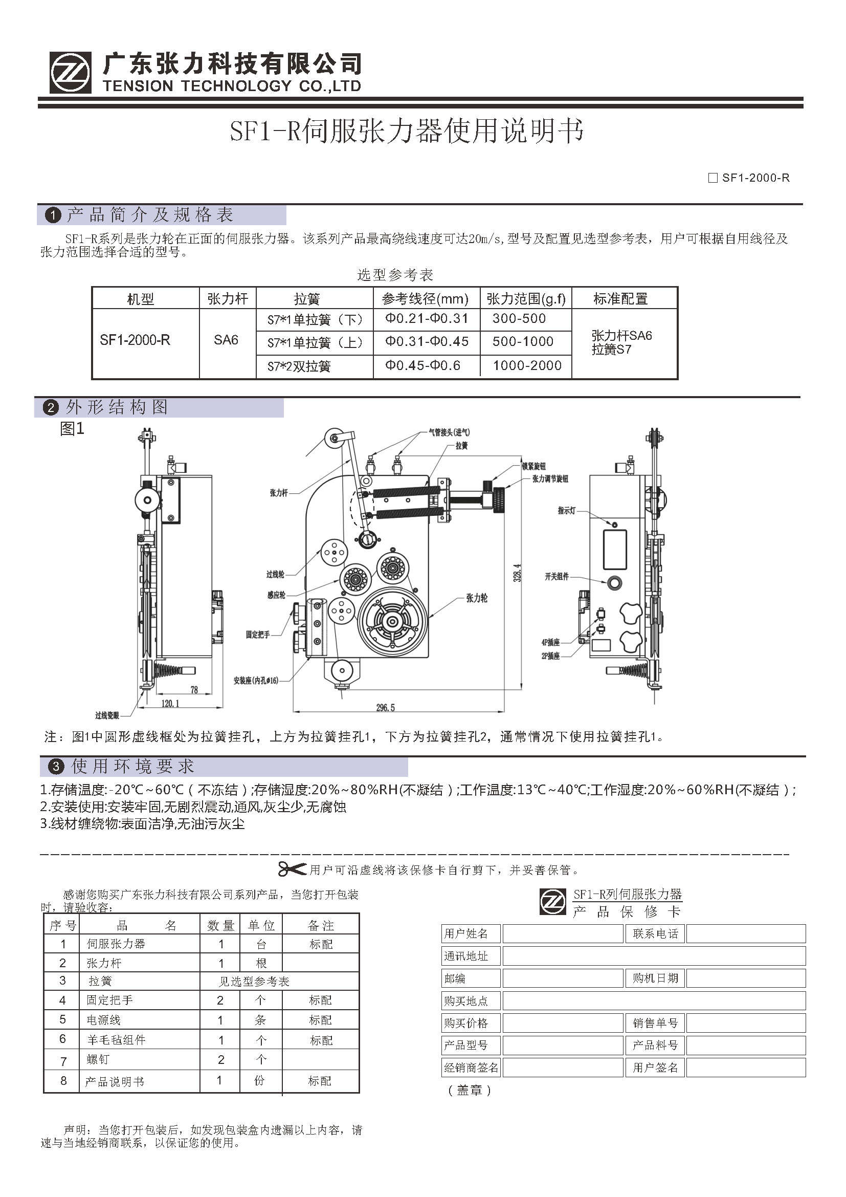 SF1-R系列是張力輪在正面的伺服張力器。該系列產品最高繞線速度可達20m/s,型號及配置見選型參考表,用戶可根據自用線徑及張力范圍選擇合適的型號。